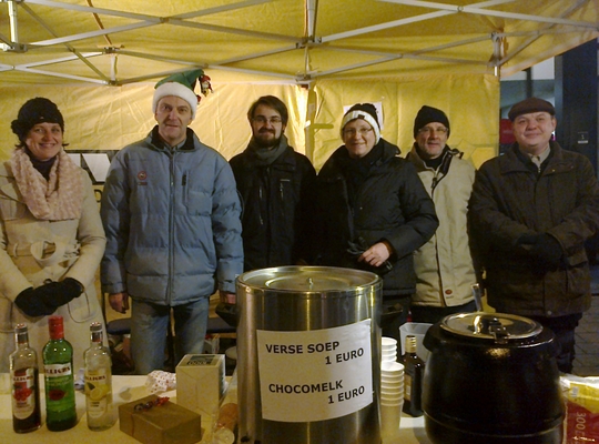 Traditiegetrouw vinden er begin december overal te lande kerstmarkten plaats. Zo ook op zaterdag 8 december in Lauwe. Net zoals bij vorige edities was het er een drukte van jewelste en zetten talrijke Lauwse verenigingen er hun stand op. Zo ook N-VA Menen. Chocoretto, jenever en huisbereide ajuinsoep ging vlot van de hand terwijl talrijke bezoekers van de gelegenheid gebruik maakten om even kennis te maken met onze schepenen in spe (Griet Vanryckegem, Dirk Vanholme en Renaat Vandenbulcke) of met enkele van onze toekomstige raadsleden. Een zeer geslaagde avond!